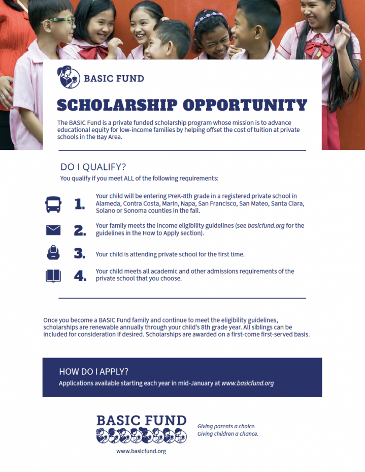 1. Basic Fund (Note: This scholarship is for children enrolling for the first time.)